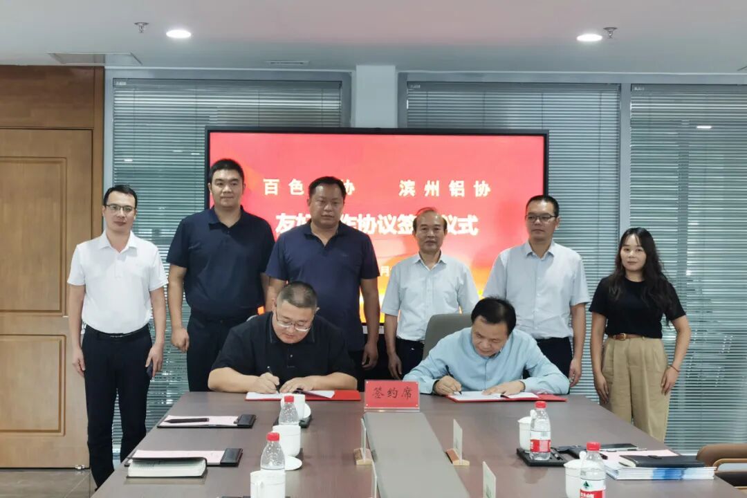 为加强协会间沟通交流,促进两地铝产业区域合作,9月23日-24日广西壮族自治区百色市铝产业协会会长陆敏、常务副会长兼秘书长黄正却一行5人来山东考察,并到协会座谈交流。滨州市铝行业协会常务副会长张宪强、副会长兼秘书长和法平等接待了客人一行。张宪强对陆敏会长一行表示欢迎,对百色铝协长期以来给予滨州铝协和滨州铝产业的关注与支持表示感谢。随后介绍了山东省铝产业和滨州市铝产业的发展情况,重点介绍了以魏桥创业为龙头,创新集团为骨干的滨州铝产业集群,围绕高端化、绿色化、智能化,上下游协同发展、链式发展的相关情况。和法平介绍了滨州铝协的成立背景及扩规提档成立山东铝协等相关情况,并就协会在服务政府、招商引资、服务会员、活动开展、行业自律等方面的工作做了介绍与探讨交流。陆敏对滨州铝协的热情接待表示感谢,表示百色市铝产业发展与滨州铝产业全产业链发展模式非常相似,经过多年的发展,形成了铝土矿—氧化铝—电解铝—铝加工—再生铝的全产业链,发展成了千亿级产业集群。近年来,百色聚焦汽车轻量化、新能源新基建、电池铝箔等重点产业链,不断丰富铝精深产品品种,不断提高铝产业附加值。滨州铝产业产业链延展广、高新技术企业多,技术雄厚,管理经验丰富,希望本次考察多走走看看,学习借鉴其宝贵经验。滨州铝协会员区域覆盖广、创新引领作用大、协调服务能力强,希望两协会达成战略合作,加强市场信息共享,组织双方会员对接合作交流,加强供需对接,共同推动两地铝产业实现合作共赢高质量发展。随后,在张宪强和陆敏的见证下,和法平与黄正却分别代表滨州铝协和百色铝协在合作协议上签字。