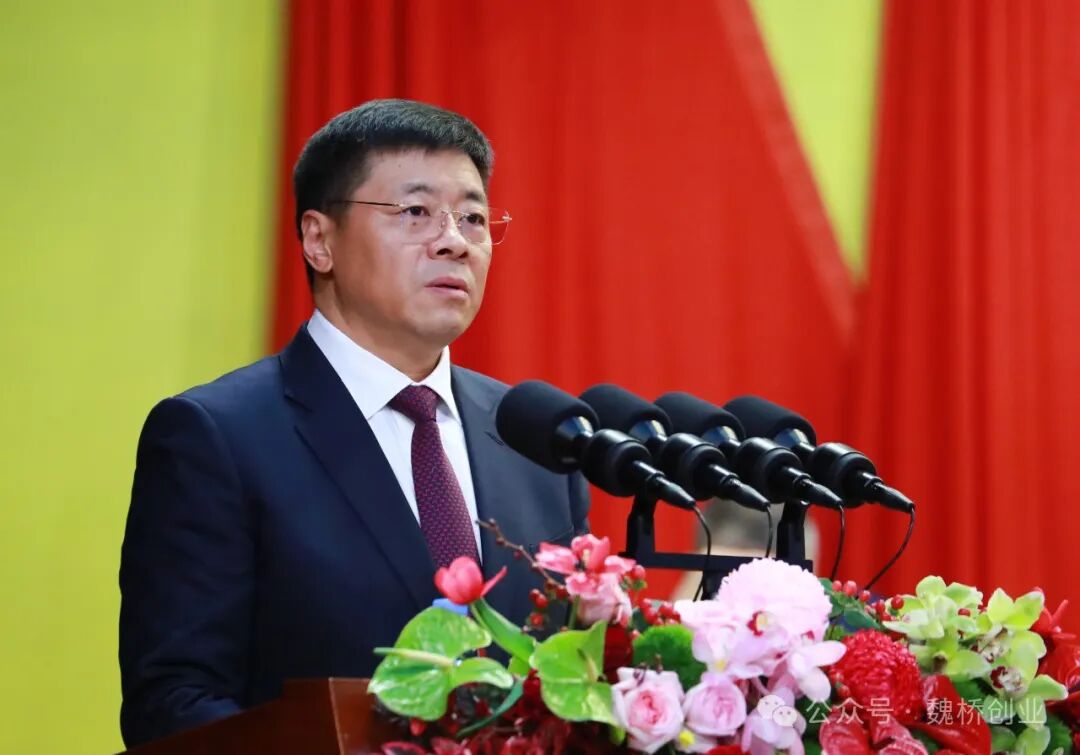 集团公司董事长张波作了题为《加快发展新质生产力 深入推进新型工业化 为全面推进中国式现代化贡献魏桥力量》的讲话。集团公司党委书记、总经理张红霞宣读了《关于表彰2024年度先进集体和先进个人的决定》。集团公司执行董事、副总经理张艳红等集团领导出席大会。宋永祥代表市委、市人大常委会、市政府、市政协“四大班子”,向魏桥创业集团取得的骄人业绩,向受到表彰的先进集体、先进个人表示祝贺。他指出,在过去的一年里,魏桥创业集团充分发挥龙头企业挑大梁的作用,持续打造产业发展标杆、创新发展标杆、绿色发展标杆,推动产品越做越优、体量越做越大、品牌越做越响,为滨州高质量发展作出了突出贡献。